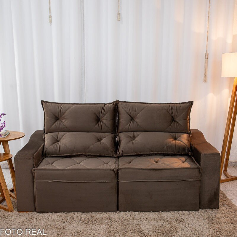 3{%%}Descrição{%%}Sofá Retrátil Reclinável Moscou 2.00m Veludo Marrom A17