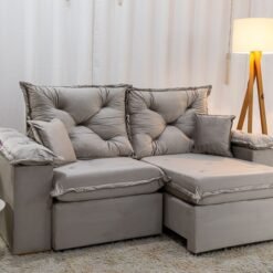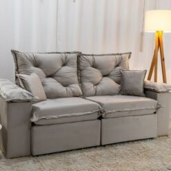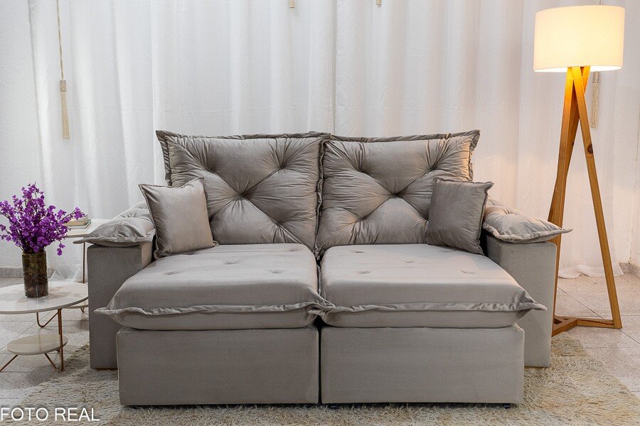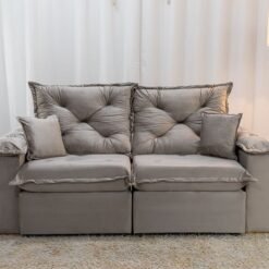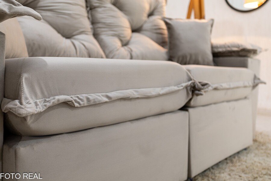 3{%%}Descrição{%%}Sofá Retrátil Reclinável Porto Madri 2.00m Veludo Bege – D28 Pró Aditivada