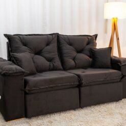 3{%%}Descrição{%%}Sofá Retrátil Reclinável Porto Madri 2.00m Veludo Marrom – D28 Pró Aditivada