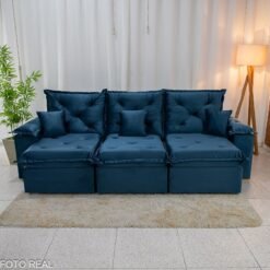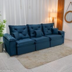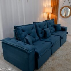 3{%%}Descrição{%%}O Sofá Retrátil Reclinável Porto Madri é a combinação perfeita entre design moderno e funcionalidade. Com 2.70 metros de largura, ele acomoda com conforto e ainda passa em portas de 70cm, facilitando na hora da entrega ou mudanças. Seu revestimento em veludo azul de toque super macio traz um charme especial ao ambiente e combina com diversos estilos de decoração.