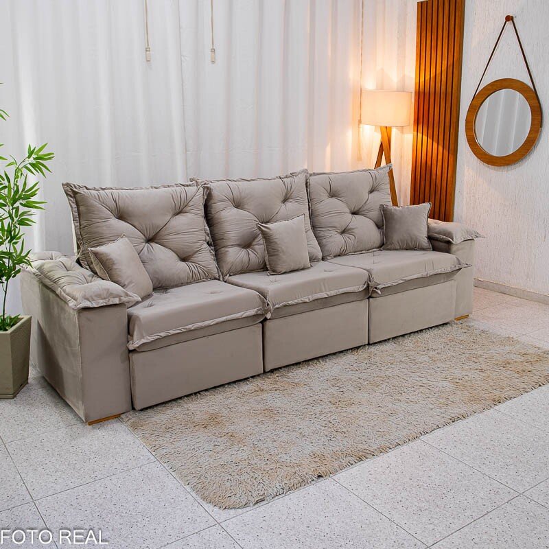 3{%%}Descrição{%%}O Sofá Retrátil Reclinável Porto Madri é a combinação perfeita entre design moderno e funcionalidade. Com 2.70 metros de largura, ele acomoda com conforto e ainda passa em portas de 70cm, facilitando na hora da entrega ou mudanças. Seu revestimento em veludo bege de toque super macio traz um charme especial ao ambiente e combina com diversos estilos de decoração.