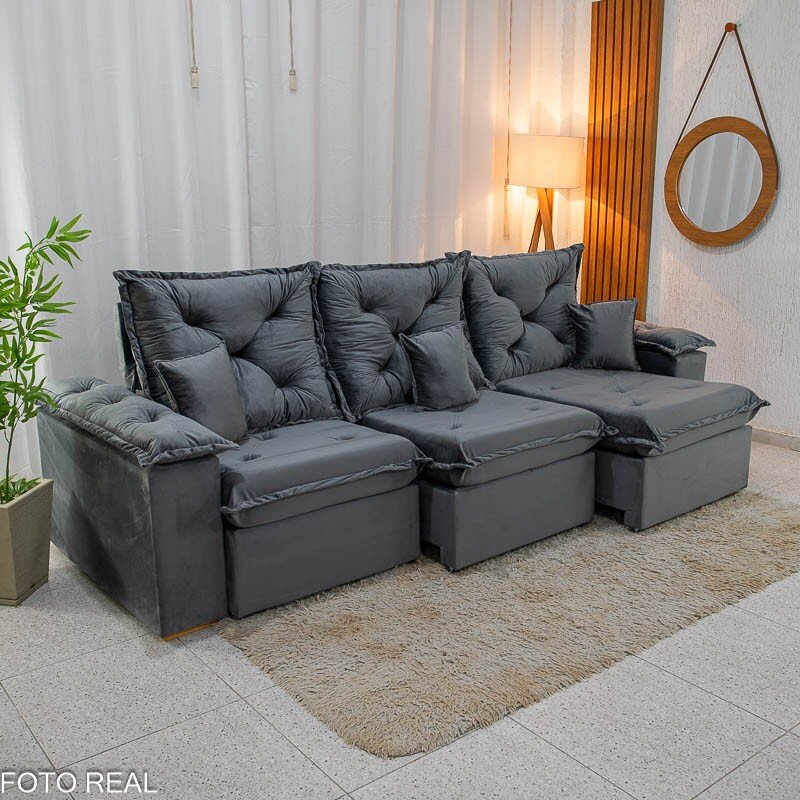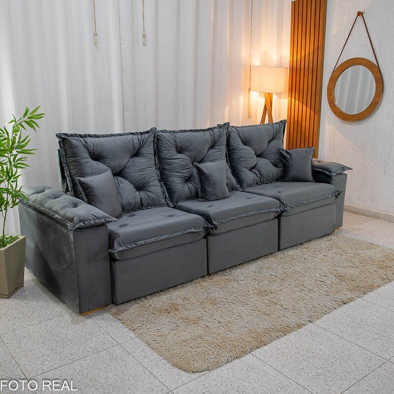 3{%%}Descrição{%%}O Sofá Retrátil Reclinável Porto Madri é a combinação perfeita entre design moderno e funcionalidade. Com 2.70 metros de largura, ele acomoda com conforto e ainda passa em portas de 70cm, facilitando na hora da entrega ou mudanças. Seu revestimento em veludo cinza de toque super macio traz um charme especial ao ambiente e combina com diversos estilos de decoração.