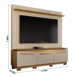 Painel Aurora Larg. 1.80m Mel/Off Detalhe Ripado para TV até 65″ – Viero