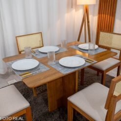 Mesa de Jantar Londrina 120×80 Cinamomo Rufato + 4 Cad. Isabela Linho Cinza 05 Madeira – KM Decor