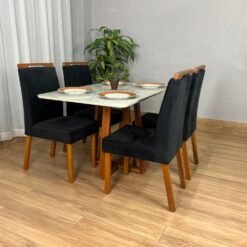 Mesa de Jantar Karla Com 4 Cadeiras – Branco/Preto