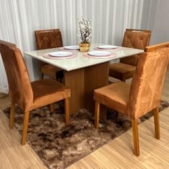 Mesa de Jantar Palace 1.10×0.75 Com 4 Cadeiras Brisa Veludo – Mel/Blonde Pastel