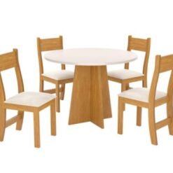 Mesa de Jantar Simpatia 1.08×1.08 Circular Com 4 cadeiras Jasmim – Cinamomo/Bege
