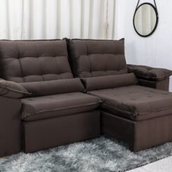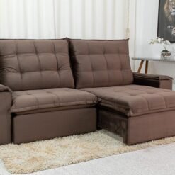 Sofá Retrátil Reclinável Atenas 2.30m Veludo Marrom 815 – D33 e Molas Ensacadas