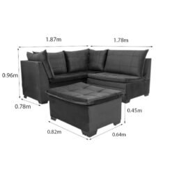 Sofá Canto 5 lugares com Puff Viena Veludo Marrom A17
