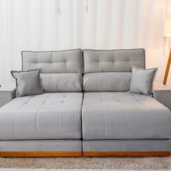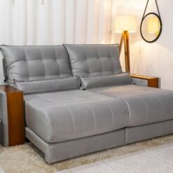 Sofá Retrátil Reclinável Gran Bello 2.30m Linho Cinza 31 – Molas Ensacadas Pocket