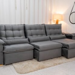 Sofá Retrátil Reclinável Emanuelly 3.20m Veludo Cinza 20 – D28 Soft