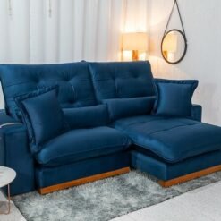 Sofá 3 e 2 lugares França com Puff Veludo Azul A16 Larg. 1.86m