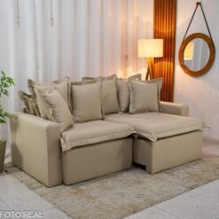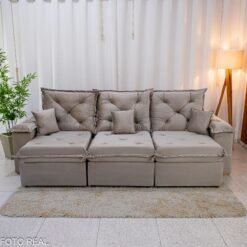 Sofá Retrátil Torino 2.10m Linho Bege 505 – Sem Caixa