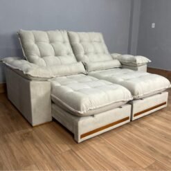 Sofá Retrátil Reclinável Pleno 2.50m – Bege Veludo