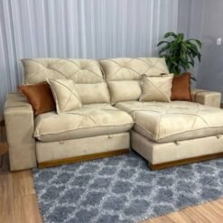 Sofá Retrátil Reclinável Pleno 2.10m – Bege Veludo
