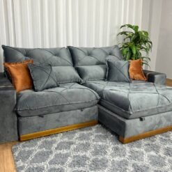 Sofá Cama Arpoador Veludo Cinza Larg. 1.85m