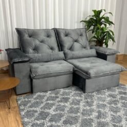 Sofá Retrátil Reclinável Pleno 2.30m – Cinza Veludo