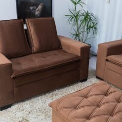 Sofá 3 e 2 lugares França com Puff Veludo Cobre Larg. 1.86m
