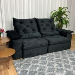 Sofá Retrátil Reclinável Porto Madeiro 2.00m- Preto Veludo
