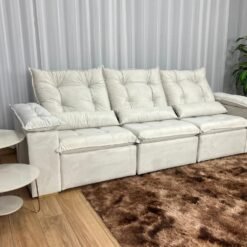 Sofá Retrátil Reclinável Atenas 2.70m – Bege Veludo
