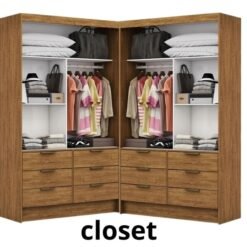Modulado 4 Portas Cinamomo/Off + Roupeiro Dubai Cinamomo/Off 03 Portas C/ 1 Espelho – Carioca