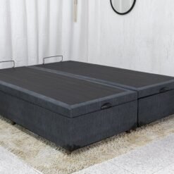 Base Box Baú Queen Bipartido Eli 158x198x42 Korino Linho Milão Grafite Blindado Nature