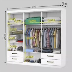 Roupeiro Hercules Branco 6 Portas 4 Gavetas C/ Espelho e Pés Larg. 1.77m – Carioca