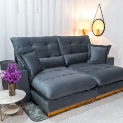 Sofá Retrátil Reclinável Toronto 2.50m Veludo Chumbo 4053 – Molas Ensacadas