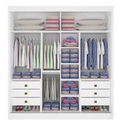 Roupeiro Casal Turim Branco 3 Portas 9 Gavetas C/ 1 Espelho 100% MDF Larg. 2.11 – Bianchi