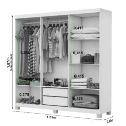 Roupeiro Solteiro Da Vinci Plus Branco 4 Portas 3 Gavetas 100% MDF Larg. 1.85m – D Doro