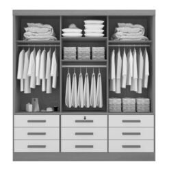 Roupeiro Casal Meridian Plus Branco 3 Portas 9 Gavetas C/ 1 Espelho Larg. 2.00m – D Doro