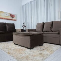 Sofá 3 e 2 lugares França com Puff Veludo Marrom A17