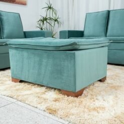 Sofá 3 e 2 lugares França com Puff Veludo Verde A40 Larg. 1.86m