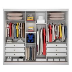 Roupeiro Casal Diamond Plus Neve 3 Portas 6 Gavetas C/ 1 Espelho 100% MDF Larg. 2.41m – Novo Horizonte