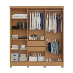 Roupeiro Cabo Frio 6 Portas e Detalhe Ripado 100% MDF Nature/Off Larg. 1.80m – Bianchi